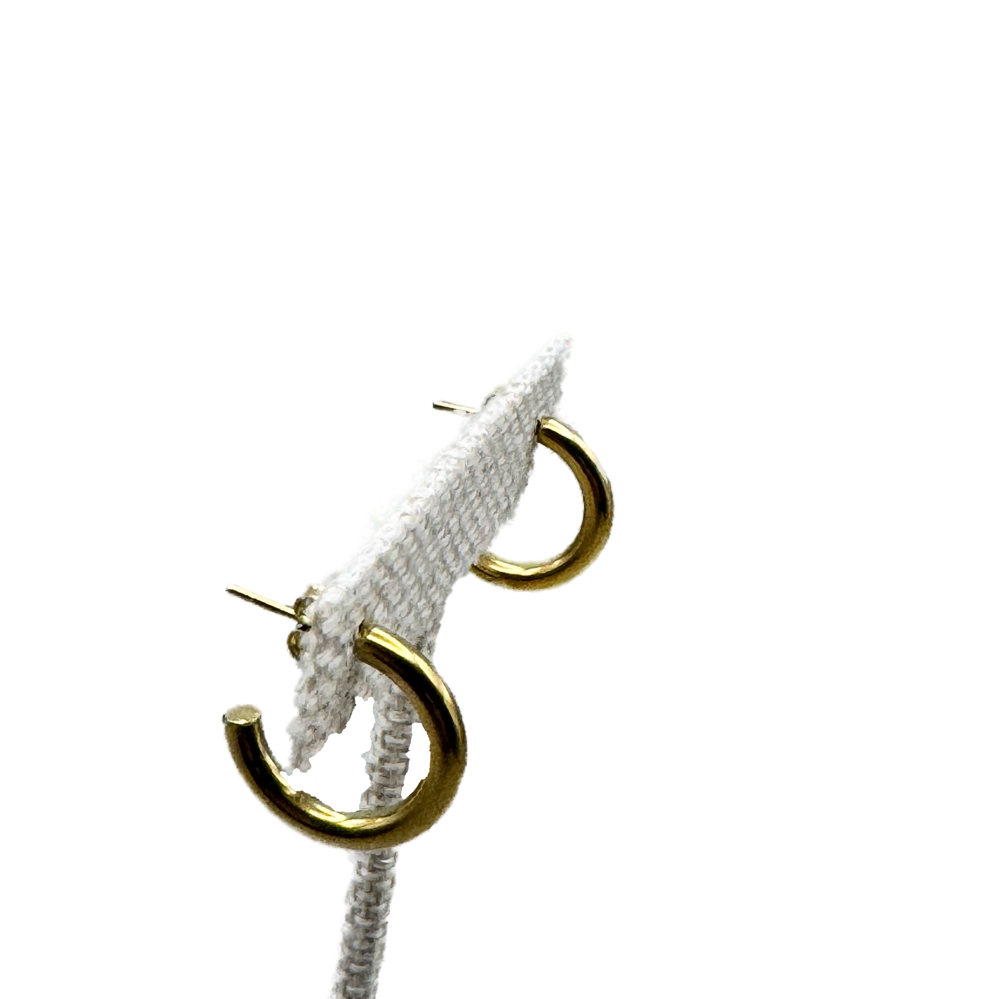 Aretes tipo aro en tono dorado con diseño grueso y acabado liso.