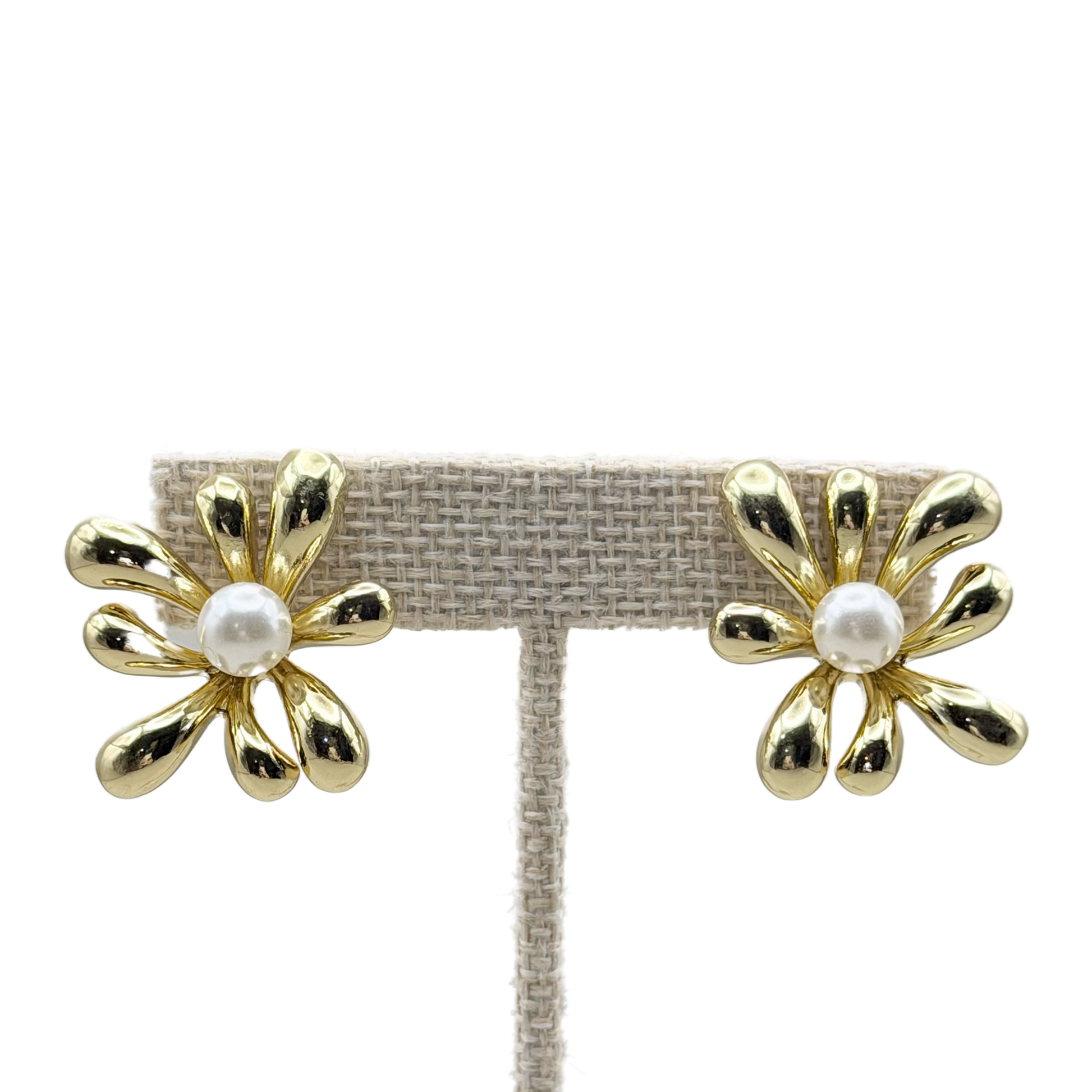Aretes Flor Dorada con Perla Central