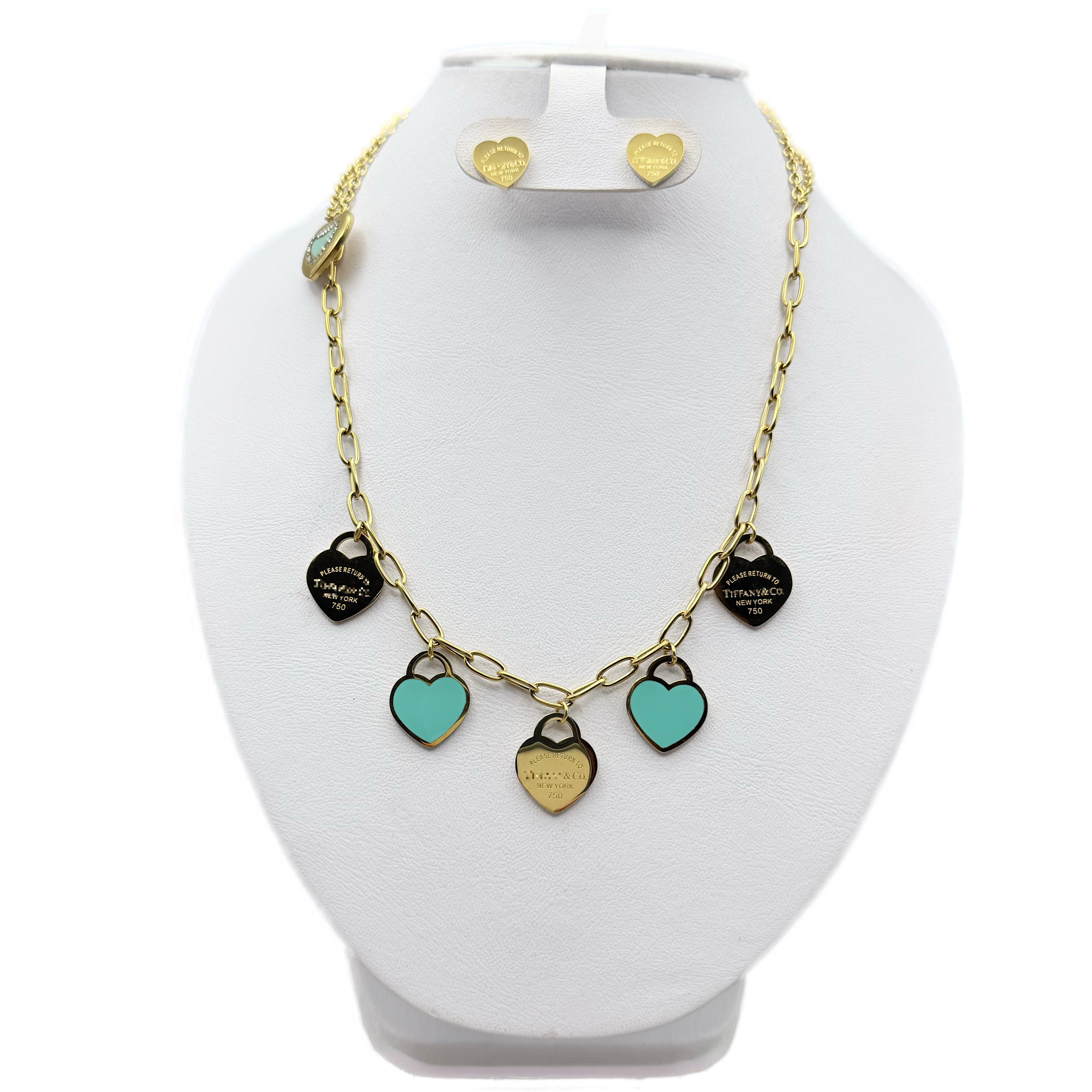 Conjunto estilo Tif. Corazones Colgantes Acero Inoxidable Dorado