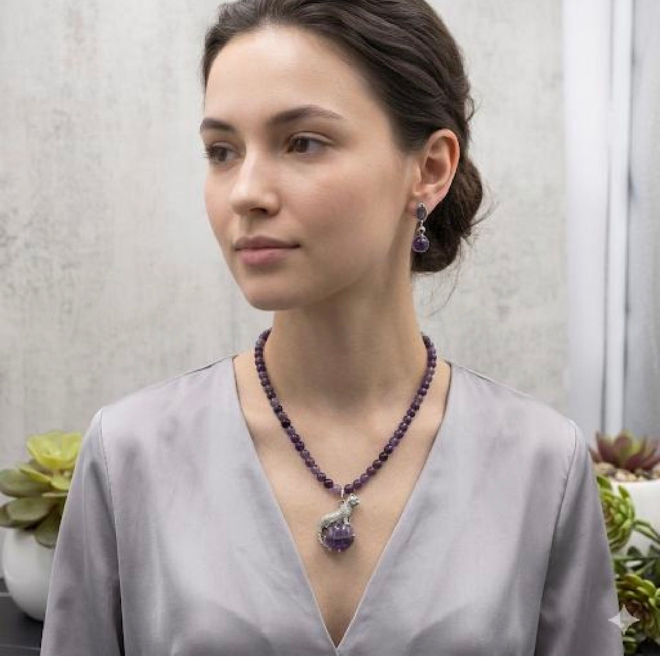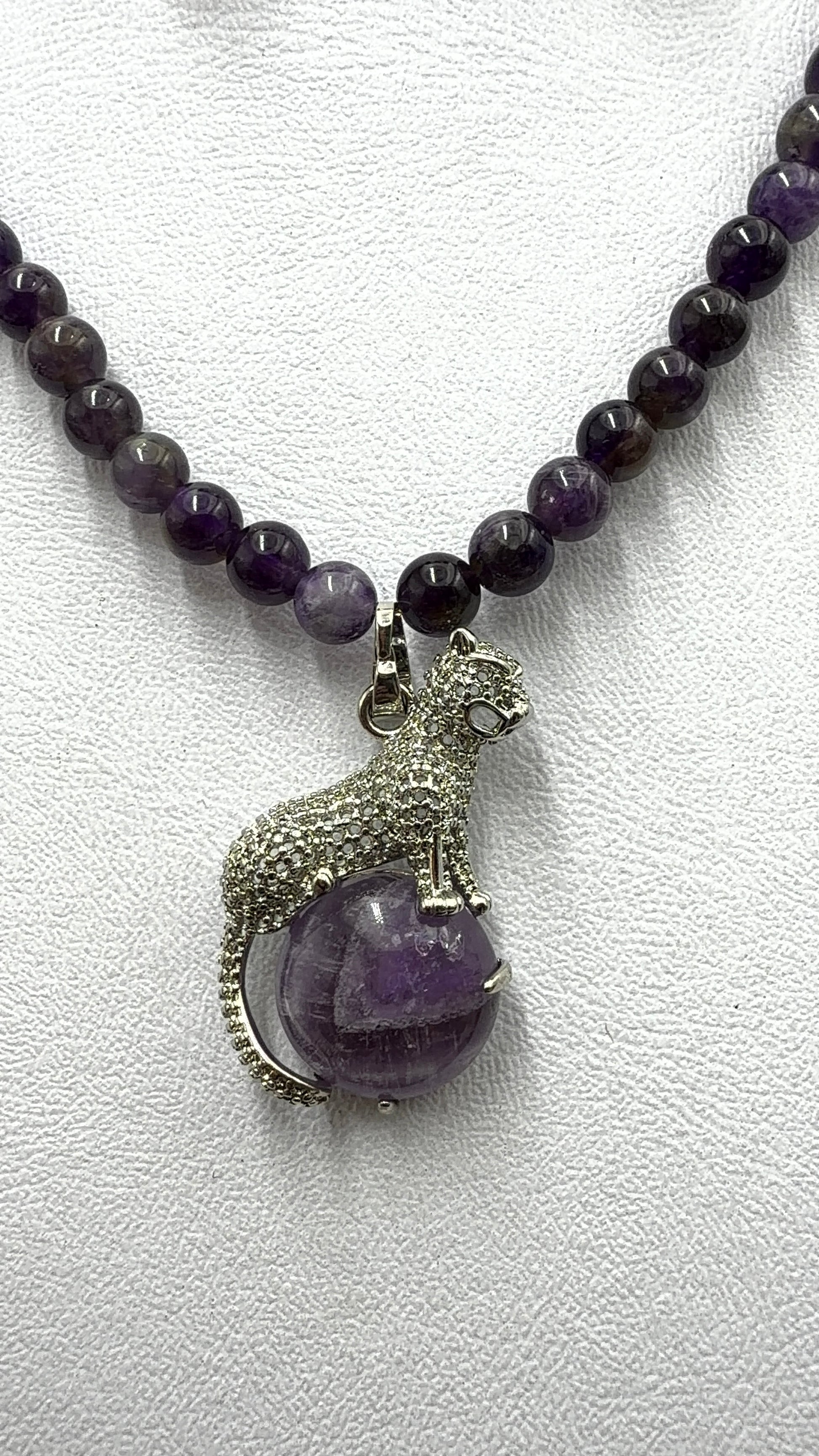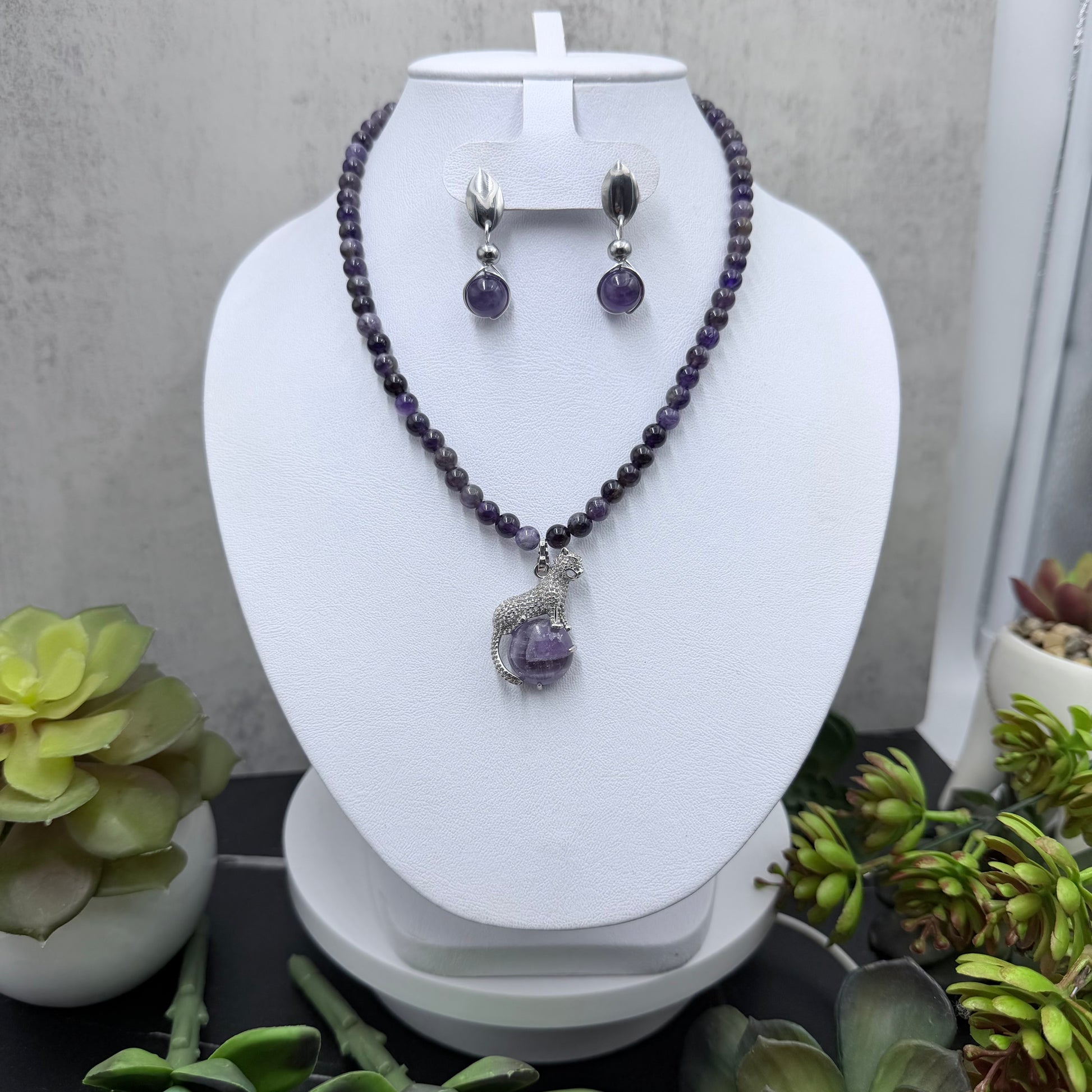 Juego de amatista con dije de puma