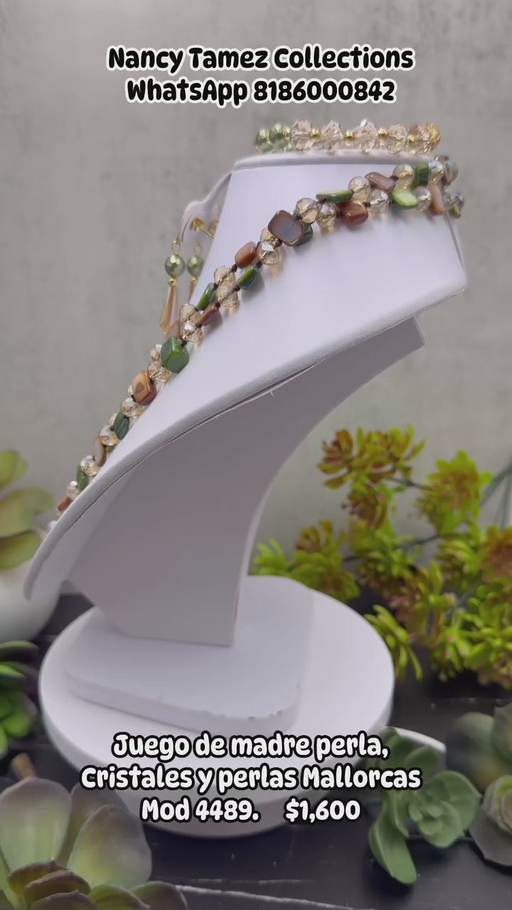 Juego de madre perla, cristales y perlas Mallorcas